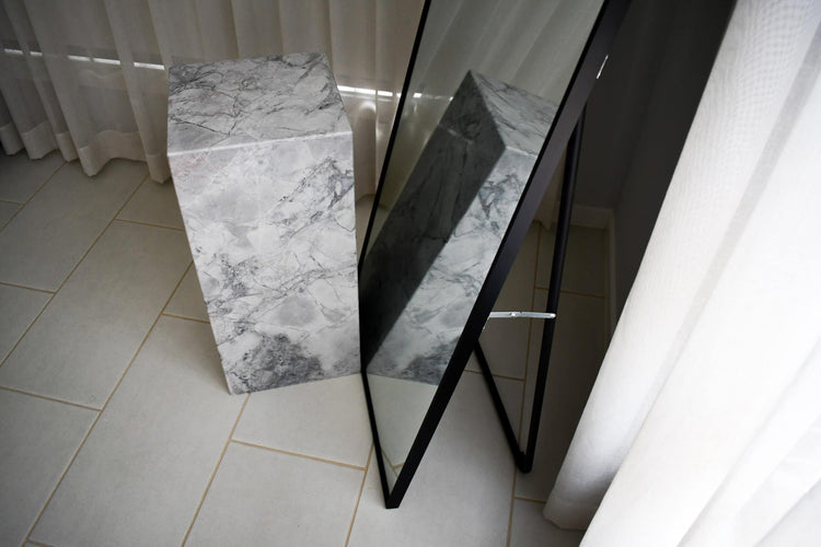 Camila is a floor to wall mirror with a black aluminum frame.